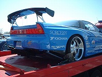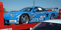 | 帰りの「道央道 輪厚SA」で変わった車を 見つけました。ピカピカの新車で 「HONDA NSX」のレーシング車両 みたいでした。 ![]() ![]() |