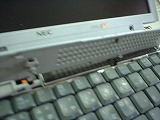 | 会社で使用してるノートPC NEC VA50Lが、ここ最近使用中にギコギコと妙な音を発するようになった。以前も同様の事態になり修理見積をとると5万円近い数字が・・・σ(^_^;)アセアセ... まぁその後音も静かになっていたので暫く使っていたのだが、ついに音(動作音も)が全くしなくなりCPUの付近が妙に熱いし変な匂いも・・。 このままだとCPUがたーちゃん・・いや、焼き鳥になるのは間違いないと思い、早速分解っす(爆)<あっ、最初はHDDの異音だと思ってましたが、CPUファンの駆動不良みたいっす。 1,まず本体裏面の手前側にあるビスを3本外します。これで表面手前のパームレスト(クリックボタンやタッチパッドが付いてる部分)が外れます。 2,パームレストが外れたら表面にkeyパネルを固定してるビスが両端2箇所あるので、外します。これでkeyパネルが外れる・・・・・アレ_(・・?..)?アレェ外れない!で、kuninenに電話です(爆)<またかい! 3,kuninenに色々アドバイスを受けます。で、通常はこれで外れるPCが多いのですが、このタイプはメインSWや表示ランプがある部分の化粧カバーを浮かしながら右にスライドさせて外します。するとその下にビスが現れるので、それを外してからkeyパッドを外します。 4,あとは簡単!放熱板にあるビス4箇所をゆるめると放熱板が外れCPUとファンユニットが顔を出します。お〜!お馴染みのk6−2やん!と感激後、ファンユニットを外します。 5,ファンユニットに薄いシールが貼ってあるので破かないようにはがします。ファンの羽部分の下にファン自体を固定してるビスが3本ありますので外します。 6,ファンを指で回してみるとガクガクとして上手く回りません。で、ファンの回転軸の隙間めがけてエアーブロースプレーでホコリを飛ばします。次に羽の回転軸中心が露見してるので、そこに潤滑スプレーを爪楊枝に吹き付け、ほんとに僅かな量を軸に塗ります(重要=この量が多いと後に油分にホコリが付着し逆効果になり数ヶ月後には回らなくなると思います。) 7,数分後に指でクルクルとスムーズに回る事を確認して、逆の手順で組み込みます。 8,復旧後、無事にウインドウズが起動! ばんざーい!ヽ(▽ ̄ )乂(  ̄▽)ノ ばんざーい!です。 (._.?) ン?・・・・アレ_(・・?..)?アレェ・・・ ・・・ネジが・・・3本も余っちゃいました(爆) ま、いっか!(笑) |
