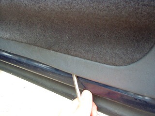 3,内張は上下に分かれてます。下の内張が上の内張の下部分に、噛み混む様に差し込まれてます。上の部分を引っ張り上げるようにすると外れます。 |
