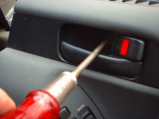 2,マイナスドライバーなどで内張をハズします。 |