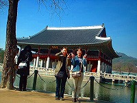 *韓国ウォンに描かれている慶会楼(キョンフェル:迎賓館みたいな建物)の前でm(≧∇≦)m イエイ!!です