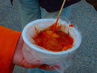 *有料トイレです *露天で何やら・・・ *辛いお餅でした(笑)