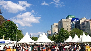 ![]() 他の会場「ライラック祭り」では世界の飲食フェアーや道内各地の 名産フードの出店が沢山。