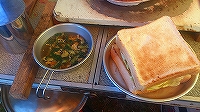 | 夕焼け | チーズイカ!美味しい! | 少し寒いテント内 |