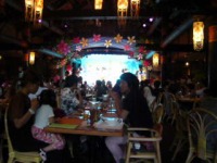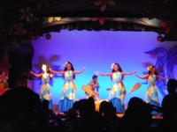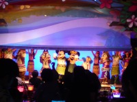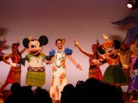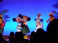 夕食は娘たちが予約してくれていたハワイアンショーを見ながらのディナーです。あんなに間近でミッキーたちを見たのは初めてでした。