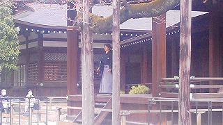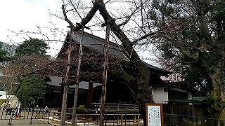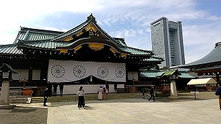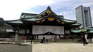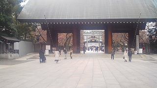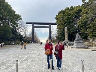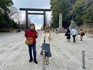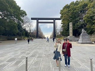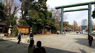 中華街から再度「エアキャビン」を利用して桜木町へ戻りたいのですがタクシーがいません。娘がアプリで配車手配して数十分たったころ、やっとタクシーが来ましたがドライバーさんの勘違いか、目の前で先にオジサンが乗り込んでるじゃないですか。慌てて娘がタクシーに駈けより説明して無事乗車。 桜木町から東京経由で次女の住んでる千葉へ到着しました。かなり歩いたので乾杯し爆睡。 三日目 翌日は昼近くまで寝ていて、以前から一度見たかった「靖国神社」へ向かいます。桜の開花時季なので楽しみでした。 |
