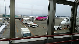 | まだ雪の残る千歳空港に到着し「ラーメン道場 札幌雪あかり」で夕食をすませ、JRで札幌駅へ向かいタクシーで20:30頃帰宅となりました。 |