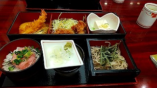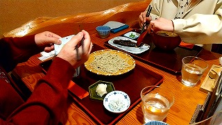 | 参拝やおみくじなど一通り見学したあとランチのため、えび天蕎麦が有名なお蕎麦屋さん「大川や」さんを訪問。土曜日限定のえび天蕎麦はソールドアウトで残念でした。にしん蕎麦などを頼みましたが、お美味しかったです。 |