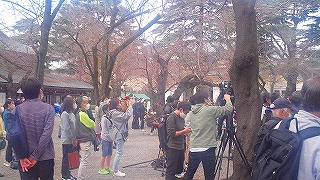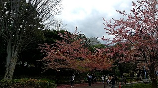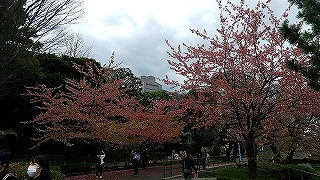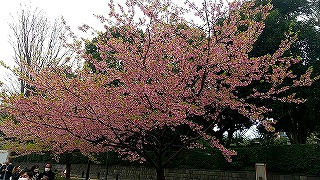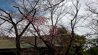 連日ニュースに出ていた「標本木」と初めてご対面するも、あと一歩のとこで開花してませんでした。 後日、テレビのニュースで開花したって言ってました。残念。 |