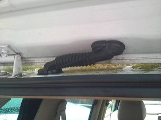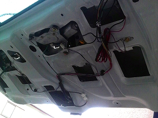 ![]() 映像線と電源線を通します。 映像線は車内のフロアマットの下を 通し、運転席まで配線しました。 |