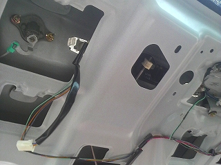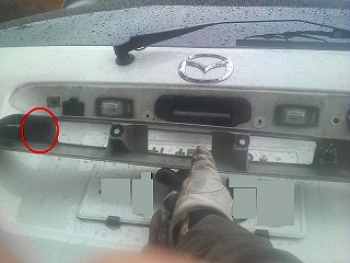 ![]() カメラ位置の作業の邪魔になるので、 リヤワイパーのボルト3箇所も外し、 浮かせておきました。あっ、ワイパーの 配線も外します。 |