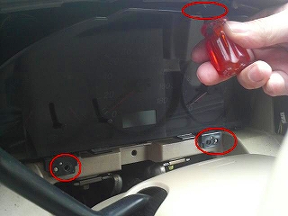 ![]() フロントパネルを外し、メーター パネルのネジ3箇所を外します。 |