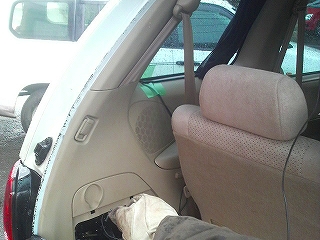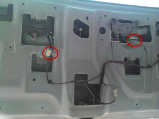 ![]() まずはリヤゲートの上側の内張から外し、 次は左右を外します |