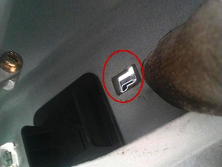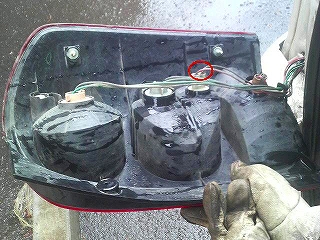 ![]() ジャッキ等入ってる箱を開けると、 リヤのランプ配線コネクターが、 見えますので、その線から、カメラ側 赤色電源をもらいました。カメラの黒線は、 アースですので、適当なボルトに挟みます。 |