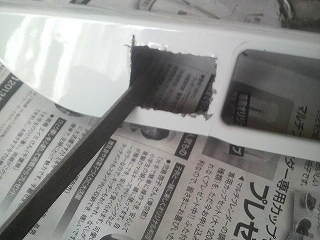 ![]() 穴をヤスリで仕上げていきます。ホントは ホットカッターで切り抜くと良いのですが、 見えないトコなんで手抜きです。 (゚ー゚;Aアセアセ |