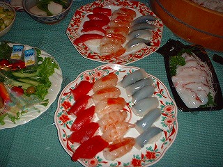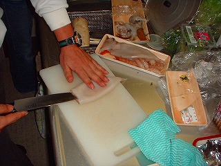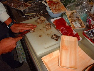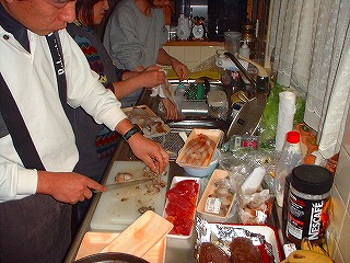 え〜〜と更に、DO料理のお肉ばかりじゃ偏食になります。と、言うわけで赤シャツさんことYokochinの生寿司の登場となりました。仕込みの写真ばかりです。あっという間に完食でした(爆)