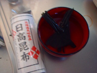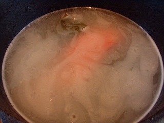 煮込んでる時間を利用して具なし御味噌汁も完成。<後でとろろ昆布を放り込む予定(爆)