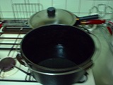で、もちろん蒸し器でも良いんですが、量が多いのと殻付きのまま放り込むんでDOの出番となりました。何でも調理できるDOは最高ですね。作り方はDOに蒸し器を置き蒸し器の底面まで水を入れ蓋をして、そのまま強火で15分〜20分位で、貝の口が開いたら完成です。超簡単でしょ?(笑)