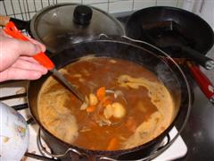 12インチに満タンで作った為、用意してたカレールー2箱では足りなくなって・・・・・困ったあげく『こくまろシチュー』のルーを投入しました(爆)結果、なんとか食べられる味でしたが、スープカレーみたいなカレーでした(爆)<4日間分ありそうです(爆)(爆)(爆)