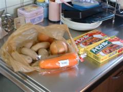 前回、インチキDOカレーを作りましたが、このままじゃいけないと思いホントのカレーに挑戦してみました(爆)まぁ、人参、ジャガイモ、タマネギ、バラ肉など定番の他に今回は『なっちゃん(ミカンジュース)』『リンゴのホッペ(余市産生リンゴジュース)』を隠し味に仕込みました。(爆)<と○パパみたい!(;^_^A