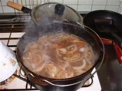 牛スジが安かったので(爆)何かDOで御料理してみようと思いnetで調べました。やはり煮込み系が多く、考え込む事数分間・・・結局短時間で可能なコーラ煮込み醤油味を創作してみることにしました。