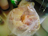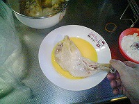 今年の大晦日!再度、フライドチキンの登場です(笑)で、ちょいと工程についてチャレンジしてみました。ヒントは某TV番組「○藤家の食卓」(爆)チキンの下味付け(塩・胡椒・etc)の段階で、電子レンジで1分強チンします。しばし粗熱を取り、その後牛乳に漬け込み匂い取りです。あとは通常のフライ段階ですが、チンしてるため、いつもより強火で短時間で仕上げます。