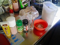 材料は、こんだけ(爆) 右は下味用の調味醤油