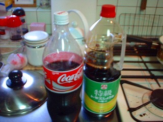スペアリブと適当なお野菜をコーラ1リットル、炭酸水0.7リットル、醤油0.5リットル、お好みで砂糖を入れて1時間程度煮込むだけ(爆)