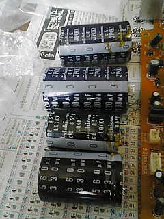 ![]() ハンダゴテでコンデンサーの交換です。 |
