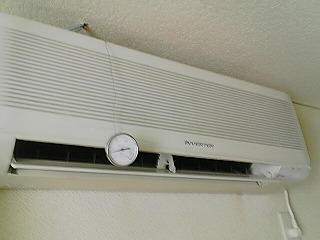 ![]() 室内機の吹き出し温度を測ります。 |