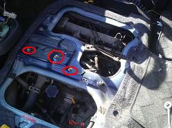 ![]() エンジンオイル口の下にも 1箇所ボルトがあります。 |