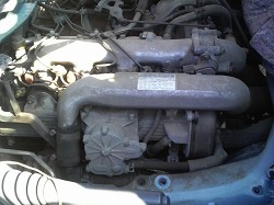 ![]() やっとエンジンが丸見えになりました。 手前がターボの部品です。 |