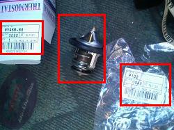 ![]() ついでにサーモスタットも交換 (品番は画像クリックで拡大) パッキンと合わせて1,300円位でした。 |