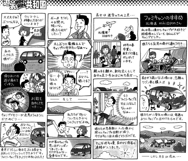 近年、子供も巣立っていくと家族共通の趣味なんて、そうあるもんじゃなく、1泊2日間じっくり家族で話す事ができるキャンプは、まさにファミリーの絆を太くするのには、うってつけのレジャーと改めて実感しました。小さい娘さんをお持ちのお父さんに是非言いたい!「親離れする将来に備えてのファミリーキャンプ!絶対にやった方が良いですよ〜!」(笑)