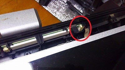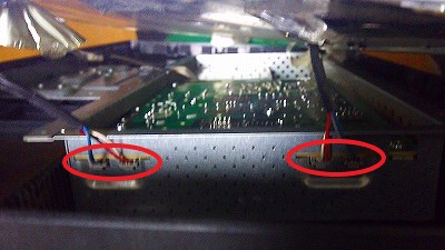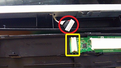 基盤の青矢印の部分に液晶からのフラットケーブルが