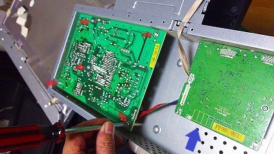 電源側基盤のネジ5カ所を外して基盤を取り出します。