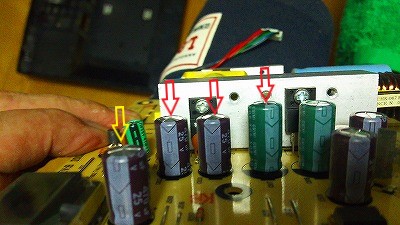 なんとか修理できないかとググってみたら電源回路のコンデンサー交換で復活した事例を発見!さっそく挑戦です。