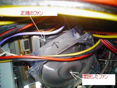 | 毎年夏になると居間のPC(初号機・サーバーマシン・ノートPC)からの 発熱で家中蒸し暑くなるし、CPUの熱暴走でパソコンの使用中に ハングするわで、困ってました。 で、以前、サーバーマシンに施した CPU用のファンを直列2連装するとCPUの温度が 10度くらい下がった事を思い出し初号機も改造を行いました。 ま、正規ファンの上にかぶせるようにして 500円程度の格安ファンを配線を利用して 菓子袋などを閉じてる皮膜針金でぶら下げただけなんですけどね(笑) しかし、これって効果抜群なんです。今回も10℃以上の低下で効果大でした。 |