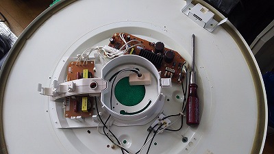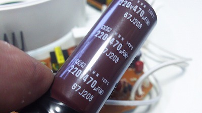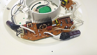 WEBでしらべるとインバータ式の照明器具は、ほとんどの方が買い換えを推奨しており情報も少ない状態。でも、一部のWEBサイトにインバータ照明器の故障は概ねスイッチの物理的故障かインバーター回路のコンデンサー不良との情報。以前、PCのディスプレイもコンデンサー交換で完治したので、ダメもとでコンデンサー交換に着手しました。
