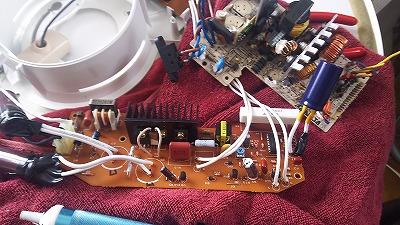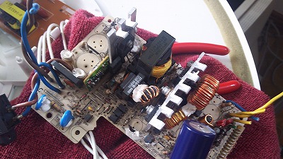 こんな感じでコンデンサ部分を修理してます。