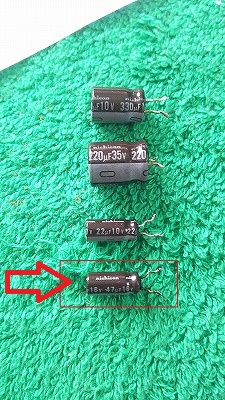 矢印が一番怪しいコンデンサー。